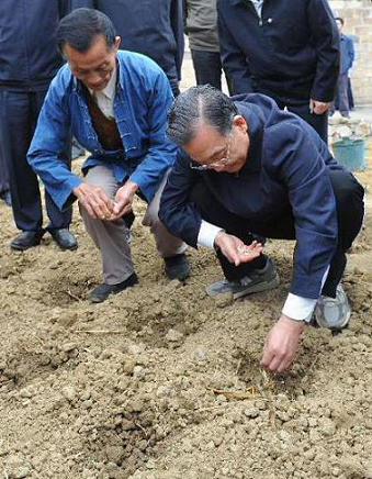 4月4日,在安龙县纳赖村,温家宝走到地里与村民们一道施肥、浇水,种下小青瓜。 4月3日至5日,中共中央政治局常委、国务院总理温家宝赶赴贵州旱灾最严重的黔西南布依族苗族自治州,先后到兴义市、兴仁县、安龙县,深入村寨,走访农户,慰问各族群众,到田间地头察看灾情,与干部群众共商抗旱救灾大计。这是今年以来温家宝总理三下西南,检查指导抗旱救灾工作。新华社记者 李学仁 摄 三下西南:温家宝考察贵州指导抗旱救灾:团结一心 战胜旱灾 4月3日至5日,中共中央政治局常委、国务院总理温家宝赶赴贵州旱灾最严重的黔西南布依族苗族自治州,先后到兴义市、兴仁县、安龙县,深入村寨,走访农户,慰问各族群众,到田间地头察看灾情,与干部群众共商抗旱救灾大计。这是今年以来温家宝总理三下西南,检查指导抗旱救灾工作。