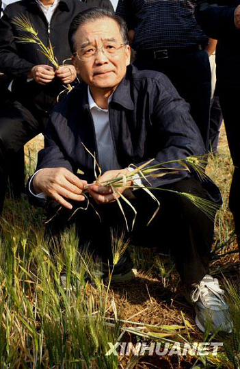 这是3月19日,温家宝来到陆良县芳华镇狮子口村万亩大麦示范田,实地察看农作物受灾情况。3月19日至21日,中共中央政治局常委、国务院总理温家宝来到云南省曲靖市,深入旱灾最严重的地区,看望慰问受灾群众,指导抗旱救灾工作。 新华社记者 姚大伟 摄 二下西南:温家宝到云南指导抗旱救灾工作纪实 去年入秋以来,我国西南地区遭遇历史罕见的特大旱灾,给群众生产生活造成严重影响。正值抗旱救灾的关键时刻,3月19日至21日,中共中央政治局常委、国务院总理温家宝来到云南省曲靖市,深入旱灾最严重的地区,看望慰问受灾群众,指导抗旱救灾工作。