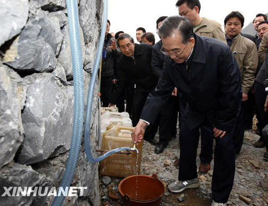 2月12日至13日,中共中央政治局常委、国务院总理温家宝来到广西河池市东兰县、巴马瑶族自治县,看望慰问受灾群众,指导抗旱救灾工作。这是2月13日,温家宝在巴马瑶族自治县东山乡弄谟村供水点拧开水龙头为群众接水。新华社记者 姚大伟 摄 一下西南:温家宝到广西旱灾地区慰问群众 去年入秋以来,我国西南大部分地区发生严重干旱,对部分群众生产生活造成严重影响。2月12日至13日,中共中央政治局常委、国务院总理温家宝来到河池市东兰县、巴马瑶族自治县,看望慰问受灾群众,指导抗旱救灾工作。 |